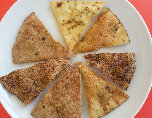 - Fluffy pocketless pita bread, brushed in butter, lightly toasted, and cut into 1 × 3-inch strips